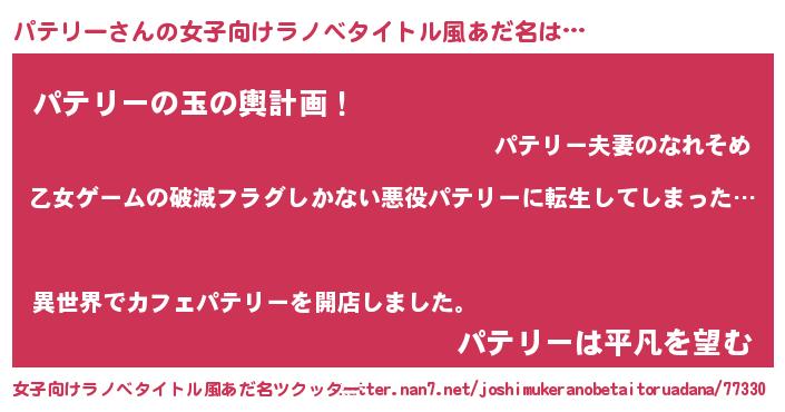 | ヒーロー風カッコイイあだ名 | 『仮面パテダー』『幻影騎士パテ』 |