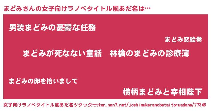 | 男性向けラノベタイトル風あだ名 | 『魔弾の王とまどみ』 |