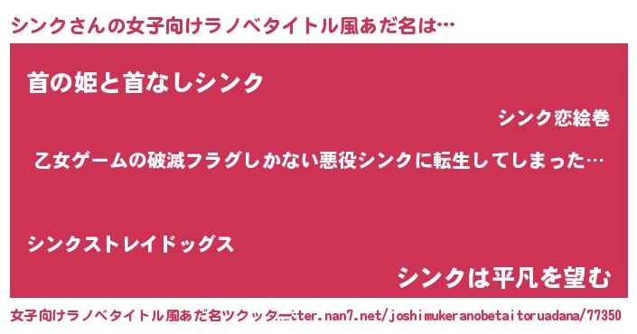 | 男性向けラノベタイトル風あだ名 | 『この素晴らしい世界にシンクを!』 |