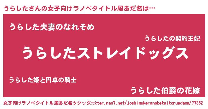 | 男性向けラノベタイトル風あだ名 | 『Re:うらしたから始める異世界生活』 |