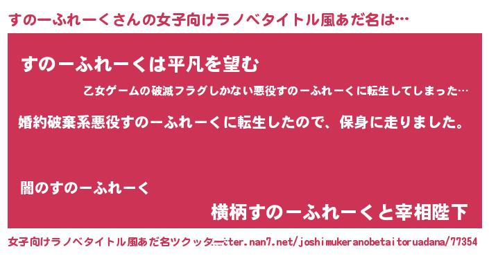 | 胡散臭い通販商品みたいなあだ名 | 『信頼と実績のサプリメント…その名も「すのーふれーく」』 |