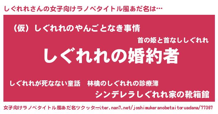| 胡散臭い通販商品みたいなあだ名 | 『運命の人と巡り会える高級そうな壺…その名も「しぐれれ」』 |