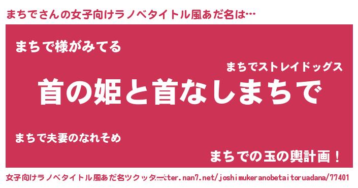 | 男性向けラノベタイトル風あだ名 | 『はたらくまちでさま!』 |