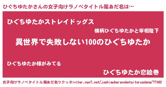 | 男性向けラノベタイトル風あだ名 | 『ひぐちゆたかという概念が存在しない退屈な世界 』 |