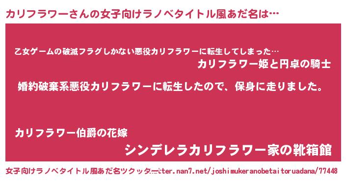 | 男性向けラノベタイトル風あだ名 | 『カリフラワースレイヤー』 |