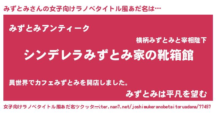 | 意味不明あだ名 | 『自称みずとみ』『永久保存みずとみ』 |