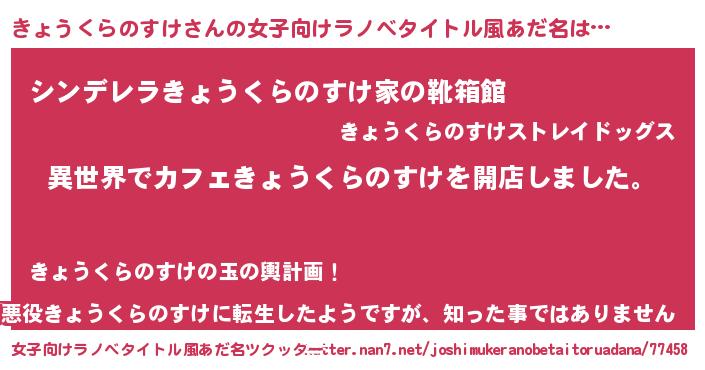 | 胡散臭い通販商品みたいなあだ名 | 『前代未聞の水素水…その名も「きょうくらのすけ」』 |