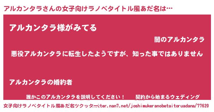 | 男性向けラノベタイトル風あだ名 | 『この素晴らしい世界にアルカンタラを!』 |