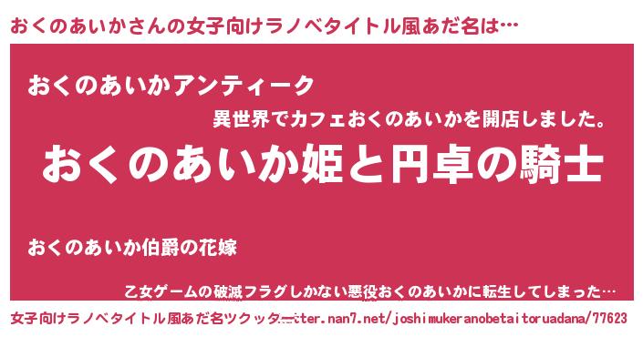 | 男性向けラノベタイトル風あだ名 | 『おくのあいかの憂鬱』 |
