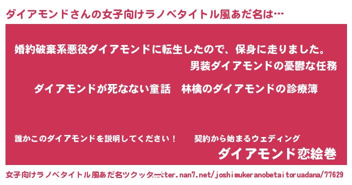 | 男性向けラノベタイトル風あだ名 | 『魔弾の王とダイアモンド』 |