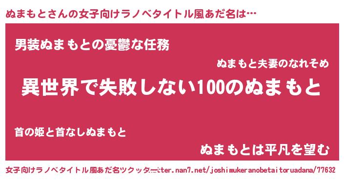 | 男性向けラノベタイトル風あだ名 | 『ぬまもとという概念が存在しない退屈な世界 』 |
