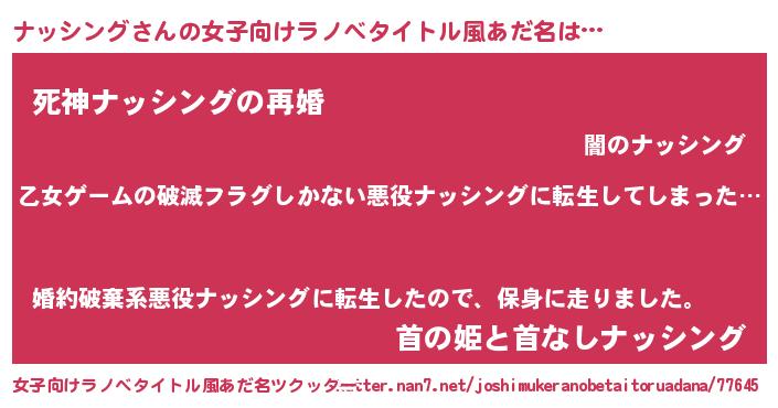 | 男性向けラノベタイトル風あだ名 | 『魔弾の王とナッシング』 |