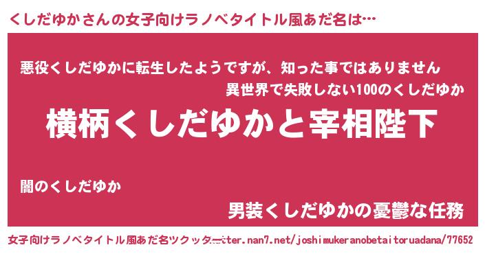 | 胡散臭い通販商品みたいなあだ名 | 『あなたにだけ特別に提供する100年もののヴィンテージワイン…その名も「くしだゆか」』 |
