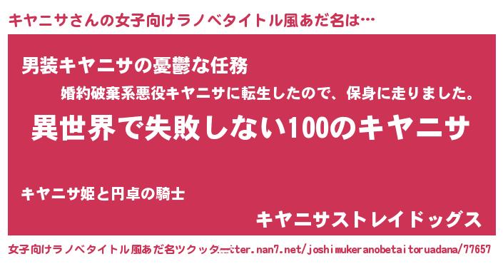 | 男性向けラノベタイトル風あだ名 | 『キヤニサという概念が存在しない退屈な世界 』 |