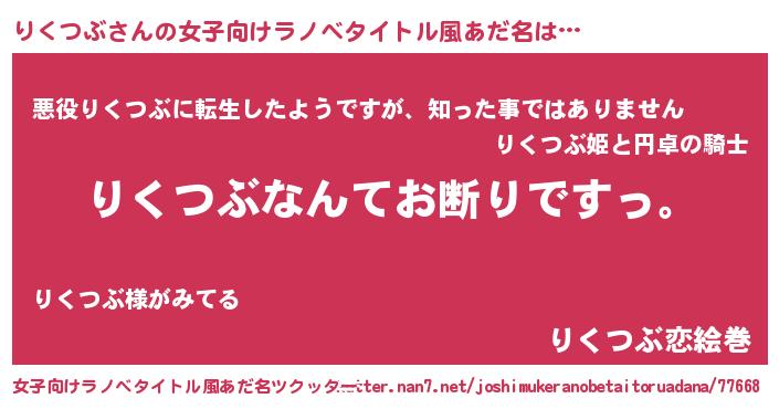 | 意味不明あだ名 | 『自称りくつぶ』『ペロリンりくつぶ』 |