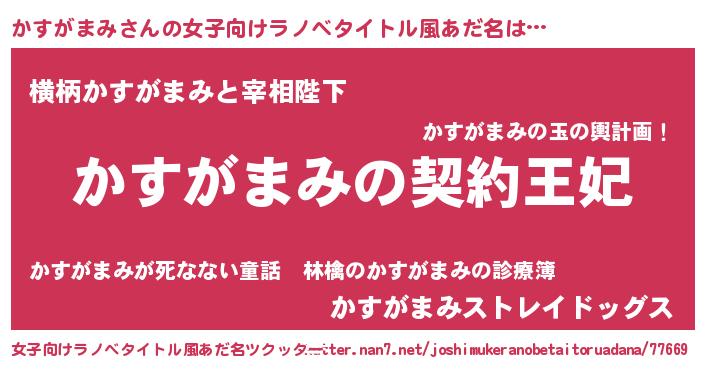 | 胡散臭い通販商品みたいなあだ名 | 『来世でも幸せになれる健康食品…その名も「かすがまみ」』 |