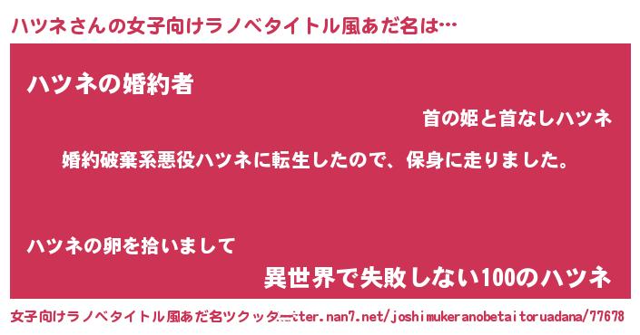 | 男性向けラノベタイトル風あだ名 | 『ハツネスレイヤー』 |