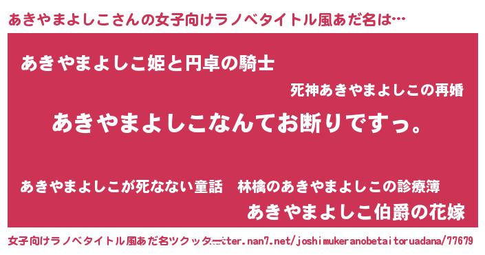 | 男性向けラノベタイトル風あだ名 | 『魔法科高校のあきやまよしこ』 |