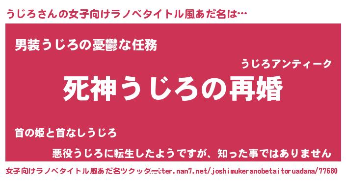 | 男性向けラノベタイトル風あだ名 | 『ノーゲーム・ノーウジロ』 |
