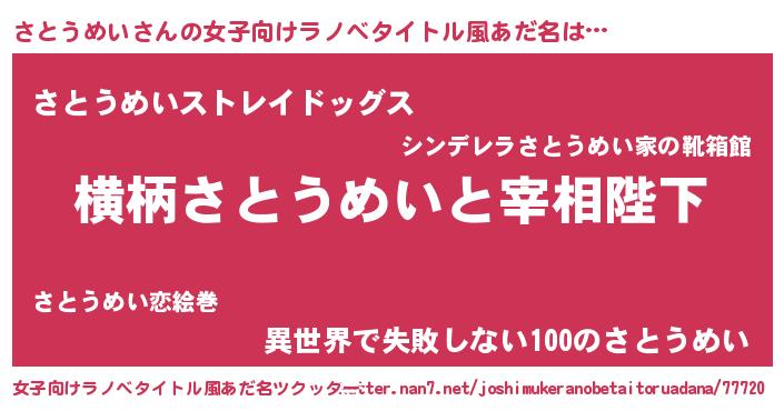 | 男性向けラノベタイトル風あだ名 | 『さとうめいに滅ぼされるだけの簡単なお仕事です』 |