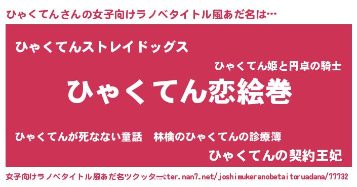 | 男性向けラノベタイトル風あだ名 | 『ノーゲーム・ノーヒャクテン』 |