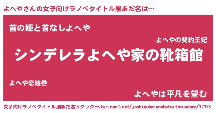| 意味不明あだ名 | 『とにかく怪しいよへや』『自称よへや』 |