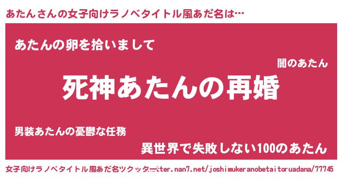 | 男性向けラノベタイトル風あだ名 | 『ノーゲーム・ノーアタン』 |