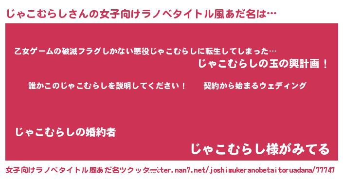 | 男性向けラノベタイトル風あだ名 | 『ジャコムラシアートオンライン』 |