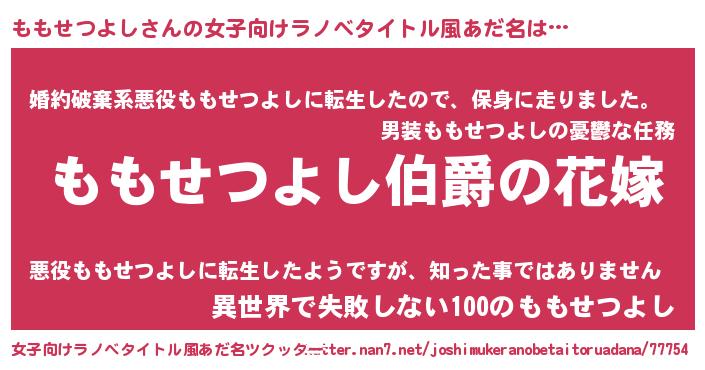| 男性向けラノベタイトル風あだ名 | 『やはりももせつよしの青春ラブコメはまちがっている 』 |