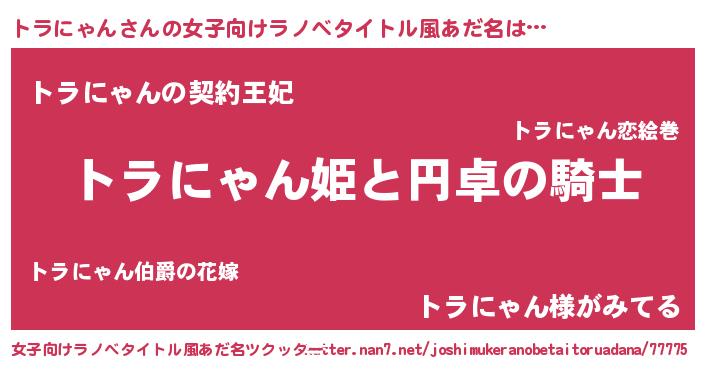 | 男性向けラノベタイトル風あだ名 | 『トラにゃんの憂鬱』 |