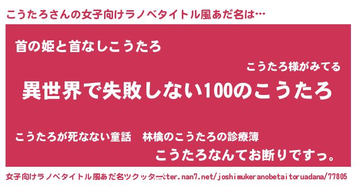 | 男性向けラノベタイトル風あだ名 | 『こうたろという概念が存在しない退屈な世界 』 |