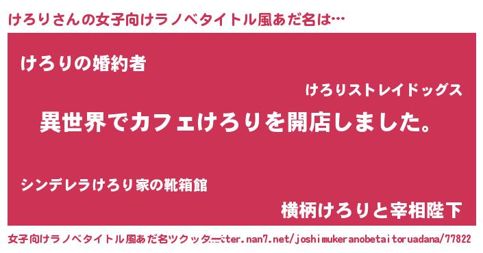 | ファンタジー風あだ名 | 『ケロディッシュ』『エターナルケロリー』 |