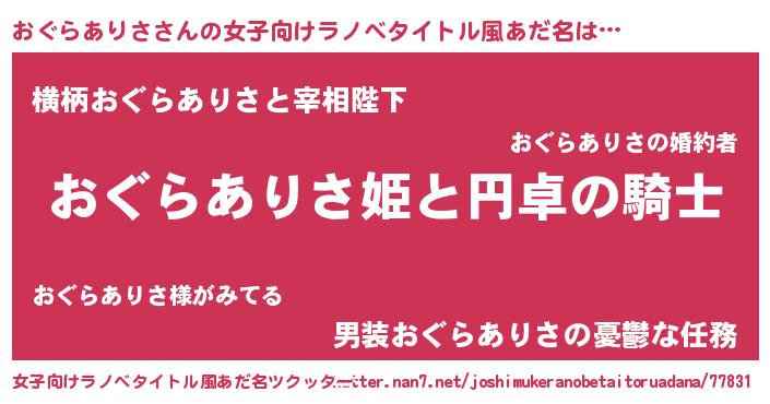 | 胡散臭い通販商品みたいなあだ名 | 『モテモテ間違いなしブレスレット…その名も「おぐらありさ」』 |