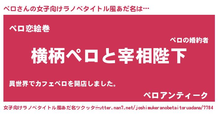 | ヒーロー風カッコイイあだ名 | 『慈愛の使者ペロ』『サイバー戦士ペロ』 |