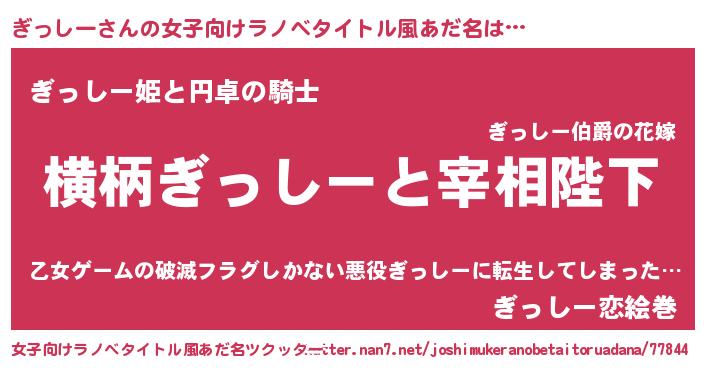 | ヘコむあだ名 | 『ぎっにゅー』『豆乳』『ぎっお』 |