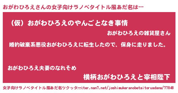 | 男性向けラノベタイトル風あだ名 | 『オガワヒロエスレイヤー』 |