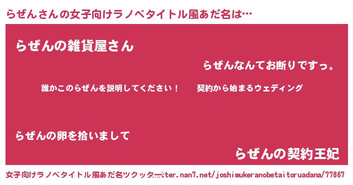 | ファンタジー風あだ名 | 『ラゼフェル』『エターナルラゼンー』 |