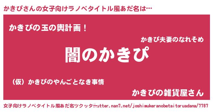 | 男性向けラノベタイトル風あだ名 | 『Re:かきぴから始める異世界生活』 |