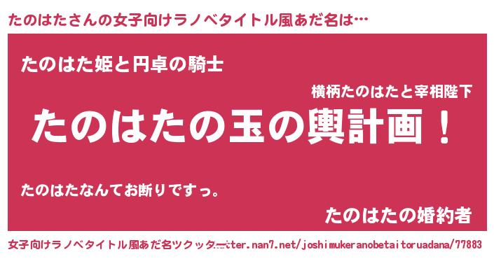 | 男性向けラノベタイトル風あだ名 | 『転生したらたのはただった件』 |