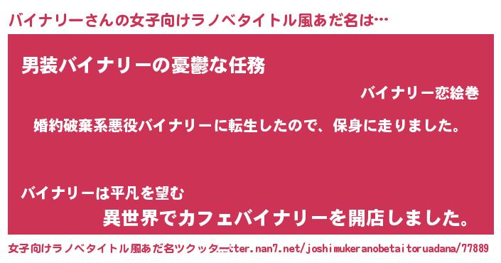 | 男性向けラノベタイトル風あだ名 | 『バイナリースレイヤー』 |