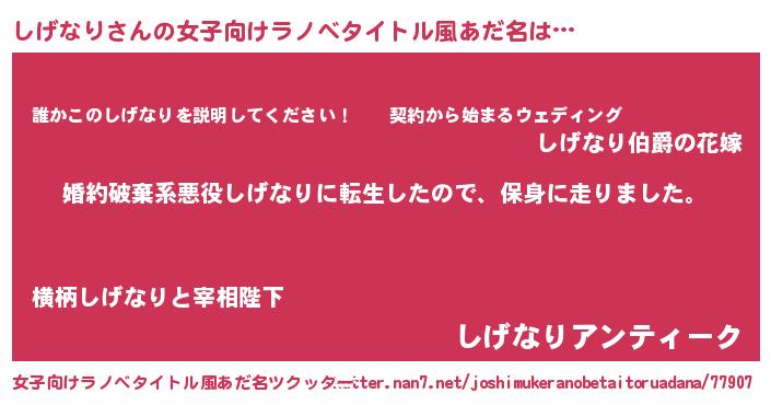 | 胡散臭い通販商品みたいなあだ名 | 『必ず成功する水晶球…その名も「しげなり」』 |