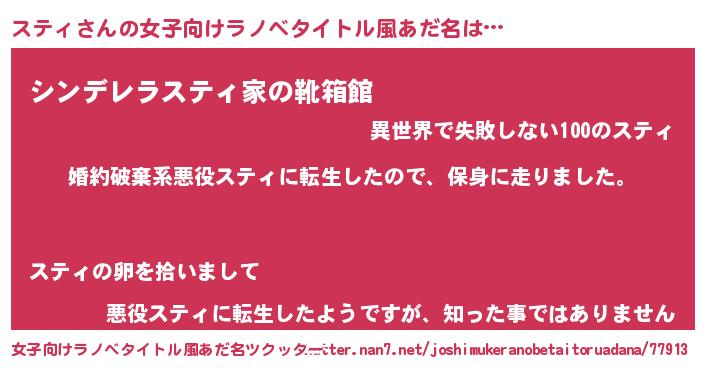| 意味不明あだ名 | 『たけのこ科スティ属』『永久保存スティ』 |