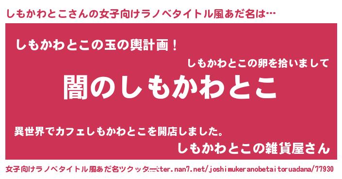 | 欧米人風あだ名 | 『ケンブリッジしもかわとこ』 |