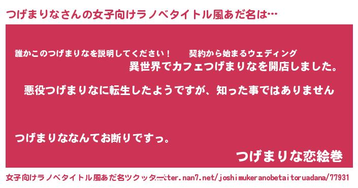 | 男性向けラノベタイトル風あだ名 | 『この素晴らしい世界につげまりなを!』 |