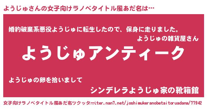| 意味不明あだ名 | 『自称ようじゅ』『めかぶ科ようじゅ属』 |
