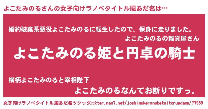 | 男性向けラノベタイトル風あだ名 | 『よこたみのるの憂鬱』 |