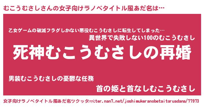 | 男性向けラノベタイトル風あだ名 | 『ノーゲーム・ノームコウムサシ』 |