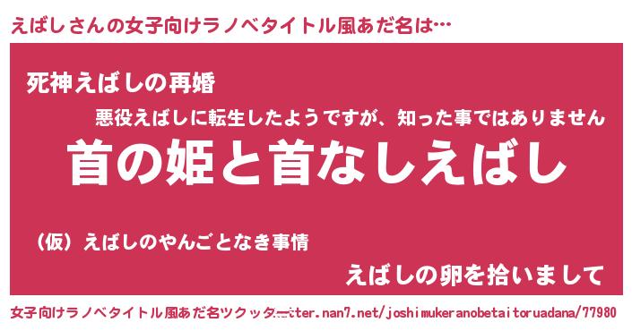 | ヒーロー風カッコイイあだ名 | 『愛の使者えばし』『魔戒騎士エバ』 |