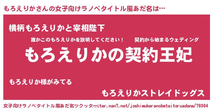 | 意味不明あだ名 | 『永久保存もろえりか』『自称もろえりか』 |