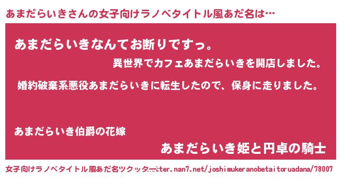 | 男性向けラノベタイトル風あだ名 | 『アマダライキスレイヤー』 |